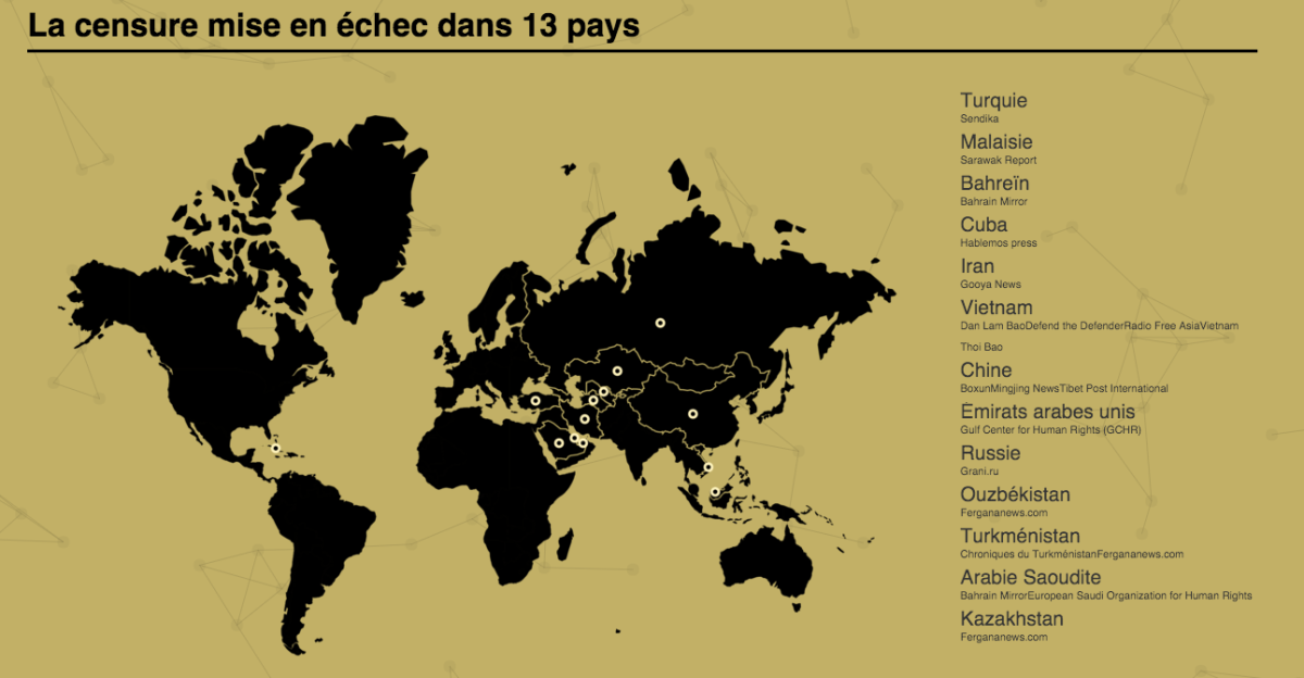 L’opération repose sur la technique du mirroring : RSF met en ligne une copie conforme du site bloqué sur des services d’hébergement informatique dans les “nuages” tels que Fastly, Amazon, Microsoft ou Google. Rendre inaccessibles les services de ces géants du Web équivaut à priver des milliers d’entreprises de technologies essentielles. Les dommages collatéraux, économiques et politiques, d’un tel blocage seraient difficiles à assumer pour les pays qui s’y risqueraient.
